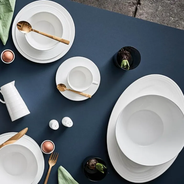 Den kremede fargen og den silkebløte glasuren understreker servicets romantiske undertoner.
