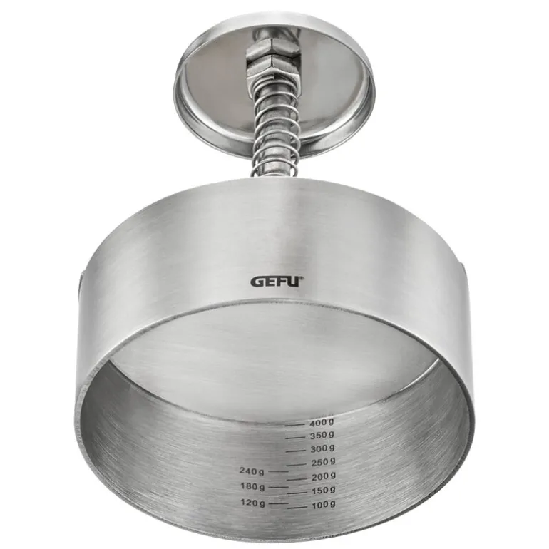 Patti Hamburgerpresse 11,5 cm Stål fra Gefu. Med denne hamburgerpressen kan du enkelt lage perfekte burgere til enhver grillfest. Den justerbare skalaen lar deg velge mellom forskjellige størrelser, fra 100 g til 400 g, slik at du får akkurat den burgeren du ønsker.