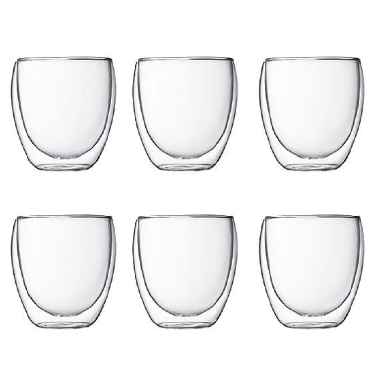Gi bordet ditt en fornyet stil med våre iøynefallende sett med PAVINA glass med doble vegger. Disse stilfulle tumblerglassene får enhver drikke til å likne et kunstverk, da det innovative dobbeltveggede designet har en flytende effekt på din favorittdrikk.Men disse prisvinnene tumblerglassene er ikke bare pene å se på, de er også smarte! Disse glassene er individuelt munnblåst av varmebestandig borosilikatglass, og de doble veggene har en termisk kvalitet som holder varme drikker varme og kalde drikker kalde. Det er en silikonventil på bunnen av glasset som jevner ut lufttrykket mellom de to glasslagene når varme eller kalde væsker tilsettes.Det vil si at du ikke brenner fingrene ved å ta rundt en kopp varm kaffe, og det blir ingen sølete kondens, så behovet for glassunderlag forsvinner. De pålitelige tumblerglassene er lette og komfortable å holde i og gir utallige serveringsmuligheter, alt fra kaffe, te og kakao til kalde brygg, brus og cocktails. Så du trenger bare kjøpe én type glass til hjemmet ditt!Hovedfunksjoner og -fordelerInnovativ konstruksjon av doble vegger som holder varme drikker varme og kalde drikker kalde.Også perfekt for servering av supper eller kalde desserter.Laget av munnblåst, varmeresistent borosilikatglass.Hydrofobisk silikonventil som jevner ut lufttrykket mellom de to lagene av glass.Tåler oppvaskmaskin, mikrobølgeovn og stekeovn (opptil 176 ºC).Bruk og vedlikeholdRengjøres i varmt såpevann før første bruk og tørk godt. For hver påfølgende bruk, vask og tørk for hånd eller putt det rett i oppvaskmaskinen. PAVINA glass med doble vegger kan trygt brukes i fryser, stekeovn og mikrobølgeovn.Bodums visjon er ren og enkel. Bodum har som mål å bringe høykvalitets kaffe- og teløsninger og husholdningstilbehør til alle, i tråd med dine verdier. Bodum innoverer for å skape flotte design til rimelige priser basert på Bodums veiledende prinsipp om at form følger funksjonalitet, samtidig som Bodum holder øye med bærekraft, miljøansvar og respekt for velferden til sine ansatte, Bodums lokalsamfunn og planeten vår.God design trenger ikke være dyrt, Peter Bodum.