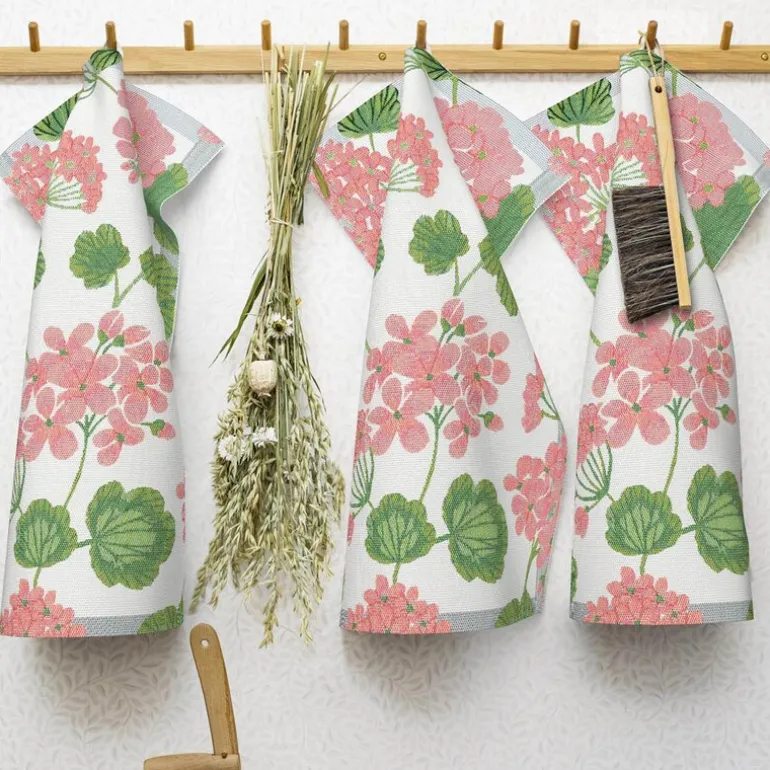 Pelargonia håndkle fra Ekelund tilfører hjemmet et friskt og romantisk preg med sitt vakre pelargoniemønster i delikate rosatoner. Med målene 35×50 cm er håndkleet ideelt for bruk på kjøkkenet, som gjestehåndkle eller som en dekorativ detalj i rommet. Det lyse og elegante designet gir et sofistikert uttrykk som passer godt inn i både moderne og klassiske interiører.