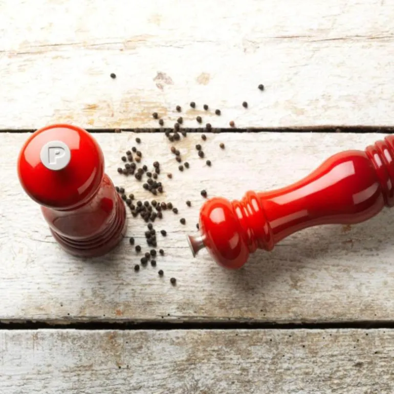 Den stilrene og effektive pepperkvernen fra Le Creuset er laget i høyglans akryl med keramisk kvern, som er ytterst effektiv til finmaling av pepperkorn. Det sterke og lette akrylmaterialet er motstandsdyktig mot korrosjon og sikrer lang levetid. Knotten er fremstilt i rustfritt stål og er inspirert av håndtaket på Le Creusets ikoniske støpejernsgryter. Kvernens grovhet justeres ved å vri på knotten. Fargen er gradert, slik at den matcher stentøy og støpejern fra Le Creuset.