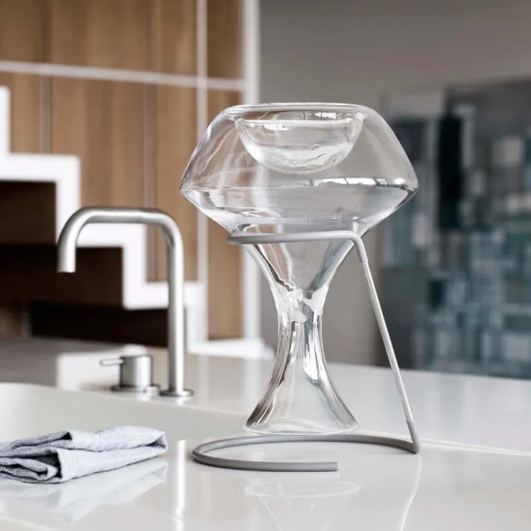 Dekantering av vin i en karaffel utfolder vinens fulle potensial og optimerer også en ung hverdagsvin til en langt mer interessant smaksopplevelse. Tom Nybroe har skapt Perfection med fokus på hensiktsmessig og fin behandling av vin. Når du heller langs karaffelens smale hals, slynges vinen rundt av sentrifugalkraften og legger seg i et millimetertynt lag på innsiden, og det sørger for en effektiv luftig av vinen. En god gaveidé ? og naturligvis et must hvis du vil invitere på vinsmaking.