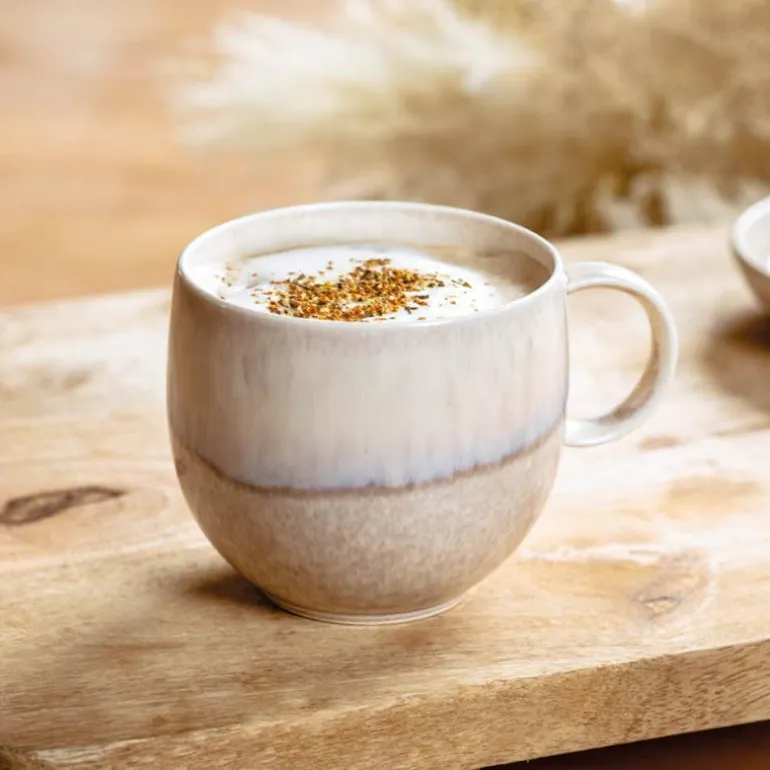 Villeroy & Boch sitt Perlemor Sand Krus på 35 cl i en delikat beige tone er ideelt for å nyte varme drikker som kaffe og te. Dette kruset, som er en del av en vakker serie laget av håndglasert steintøy, gir en unik og autentisk følelse til hver kopp, takket være den reaktive glasuren som skaper subtile fargevariasjoner. Siden ingen krus er helt like, tilfører de et særpreg og en naturlig skjønnhet til borddekkingen. Kombiner gjerne med andre deler fra serien for en gjennomført og harmonisk stil.