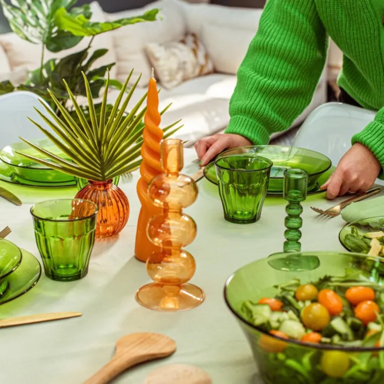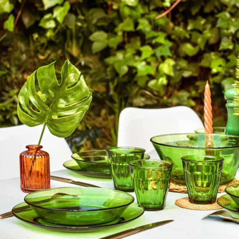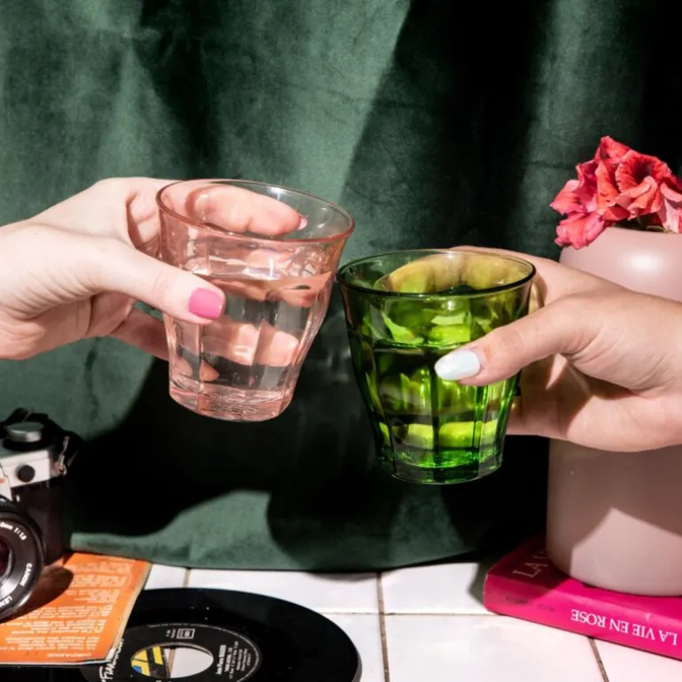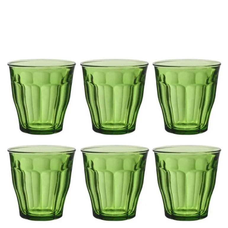Duralex Picardie vannglass i grønn leveres i sett med seks glass à 25 cl. Laget av støtsikkert, herdet glass og designet med den kjente fasettformen som gir godt grep og reflekterer lyset vakkert.