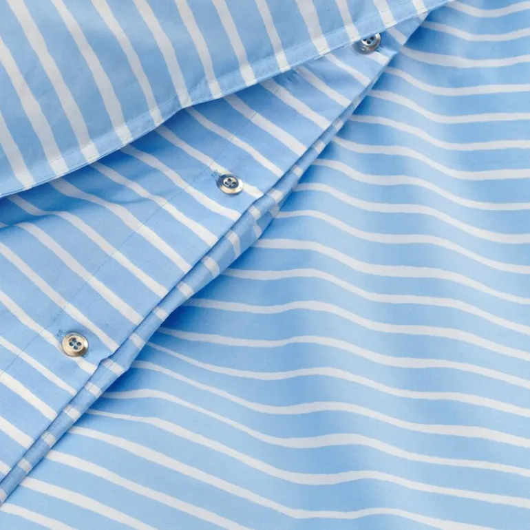Mønsteret, skapt av Vuokko Eskolin-Nurmesniemi i 1953, er en hyllest til enkle, håndmalte striper som gir et dynamisk og kunstnerisk preg. Den stilrene kombinasjonen av hvitt og blått skaper en beroligende atmosfære. Putetrekket består av 75 % økologisk bomull og 25 % resirkulert bomull, noe som gir en naturlig mykhet og slitestyrke. Siden 1951 har Marimekko vært en pioner innen skandinavisk design, kjent for sin evne til å kombinere mønstertradisjon med moderne tekstilkvalitet.