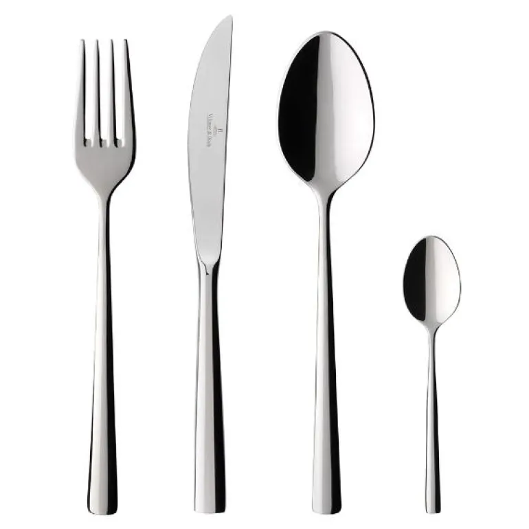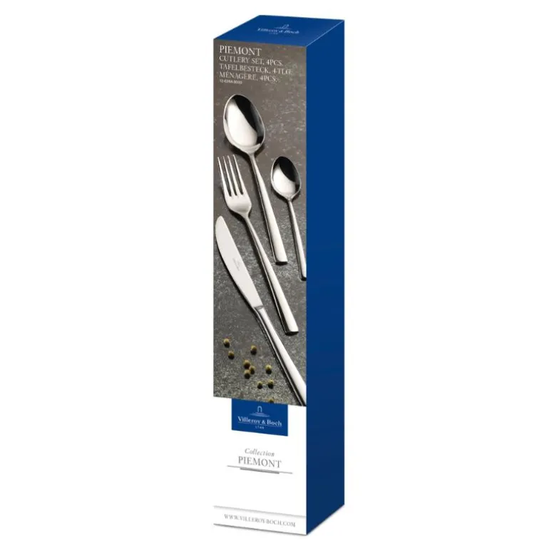 Det elegante bestikket fra Piemont har et tidløst enkelt design og passer til ethvert bord. Villeroy & Boch har vært synonymt med servise og tilbehør av høyeste kvalitet siden 1748.Piemont bestikk i 4 deler/for en person, er laget av rustfritt stål av høy kvalitet. Takket være den behagelige formen sitter den perfekt i hånden din. Det ideelle bestikket for ditt hjem. Tåler oppvaskmaskin.Utstyr hjemmet ditt med bestikk fra Villeroy & Boch.