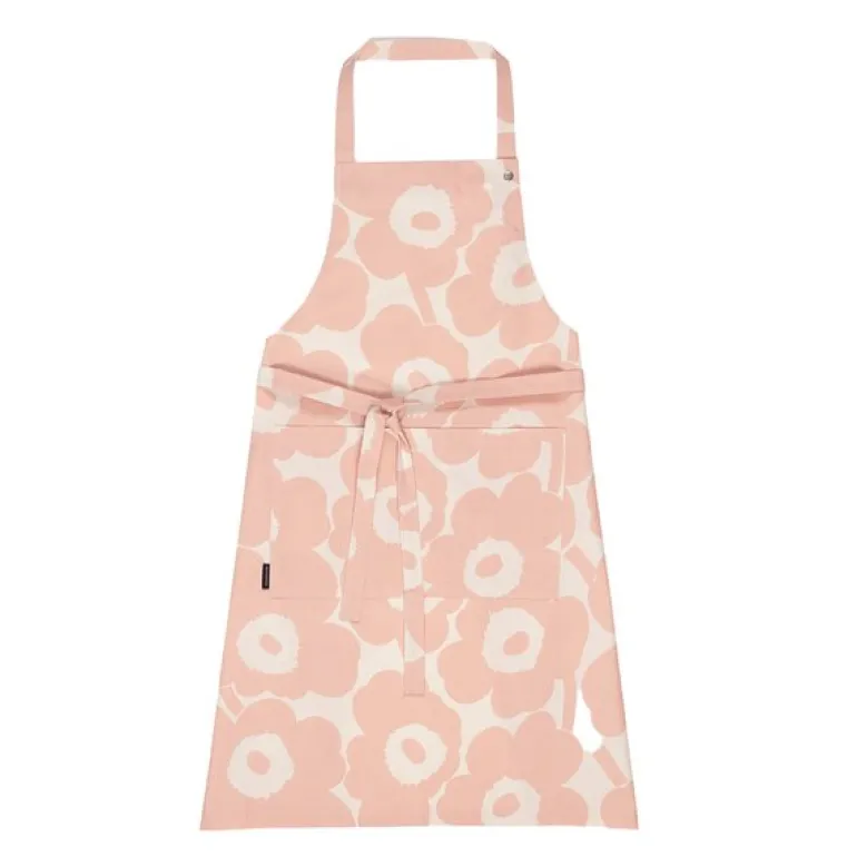 Pieni Unikko forkle peach, fra Marimekko. Forkleet har en lomme foran, en justerbar nakkestropp og bånd i livet som kan knytes sammen bak.