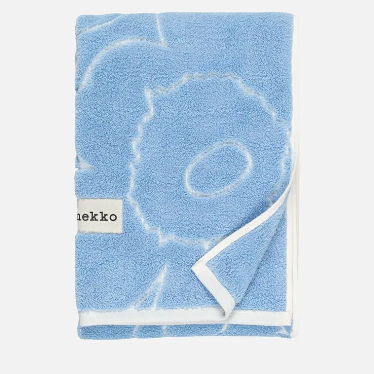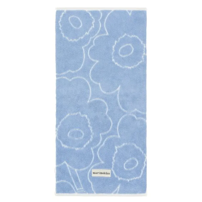 Marimekkos Piirto Unikko-håndkle er en luksuriøs og praktisk detalj for baderommet. Det måler 50×100 cm og er laget av myk bomullsterry med høy absorberingsevne, noe som gjør det både behagelig å bruke og lett å vedlikeholde. Håndkleet har det debosserte Piirto Unikko-mønsteret som skaper en raffinert tekstur, samt Marimekkos merkevarelogo på den nederste kanten.