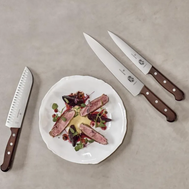 Victorinox kokkekniv 15 cm i rustfritt stål med treskaft. Knivbladet er tynt og skarpt og gjør at du kan skjære alt av grønnsaker, frukt og kjøtt i jevne stykker og så tynne skiver som du ønsker. Skaftet er ergonomisk formet og polert for hånd for å gi be