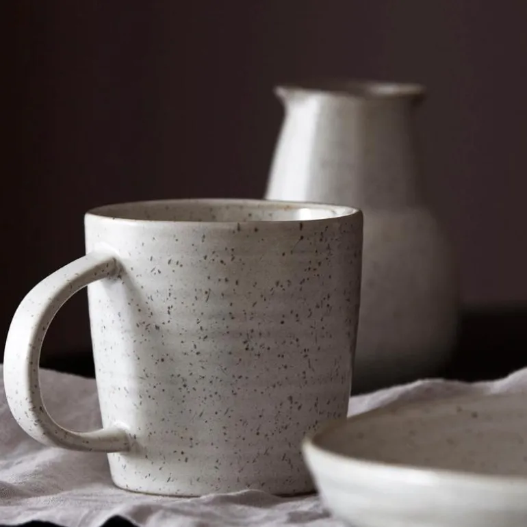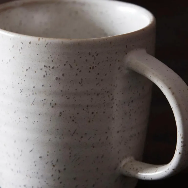 Kos deg med kaffe, te og varm sjokolade med Pion kopp 38 cl fra House Doctor. Det store håndtaket skaper en balanse i designet og gjør koppen behagelig å holde på. Den er laget av porselen og har fått en hvit / grå glasur med flekker for et hverdagslig utseende og preg. Bruk den til en velfortjent tepause, en uformell kopp kaffe med venner og langsomme morgenstunder.