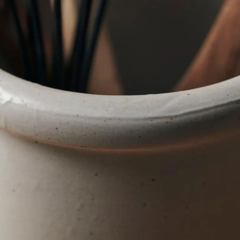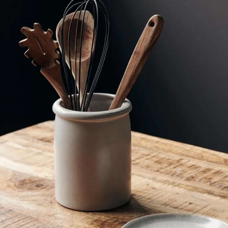 Organiser kjøkkenartiklene dine med stil med krukken Pion fra House Doctor. Den er laget av porselen og er avsluttet med en hvit, flekkete glasur som gir den et fint, men uformelt preg. I stedet for å ha stekespader, visper og treslever i skuffen, still dem fram på kjøkkenbenken og ha dem i nærheten når du skal bruke dem i hverdagens matlaging. Krukken er et fint tillegg til kjøkkeninnredningen og vil passe godt til enhver stil og fargevalg.