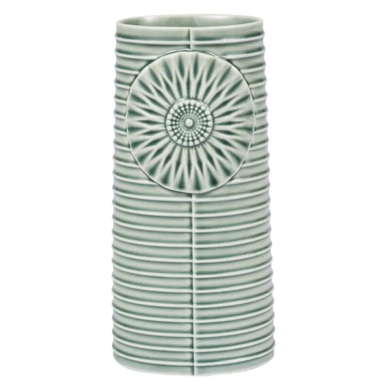 Pipanella Lines Oval vase i Grønn fra Dottir er et elegant og harmonisk design, laget for å tilføre rommet en følelse av ro og naturlig skjønnhet. Designet av Thora Finnsdottir, har vasen en slank, oval form og rene linjer som skaper en beroligende atmosfære, perfekt som midtpunkt eller som en dekorativ aksent i hjemmet. Den myke grønne glasuren gir vasen et forfriskende preg og en subtil forbindelse til naturen, noe som lyser opp rommet og tilfører en følelse av harmoni.