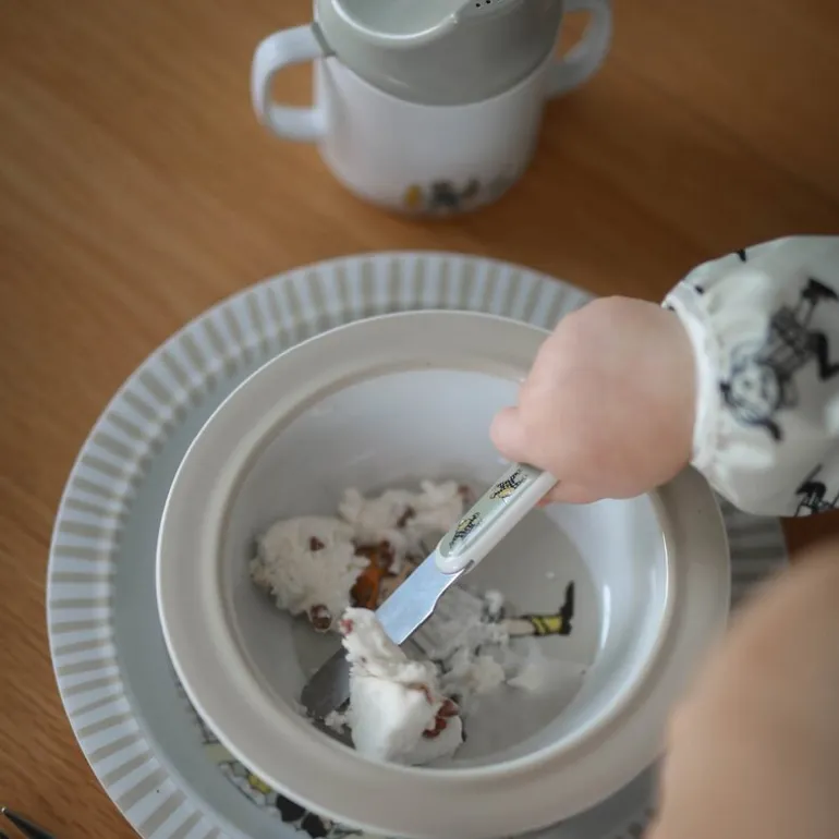 De to tallerkenene i settet – en dyp og en flat – har en silikonring på undersiden som sikrer at de står stabilt på bordet. Dette gjør måltidene mer komfortable og minimerer risikoen for veltede tallerkener.