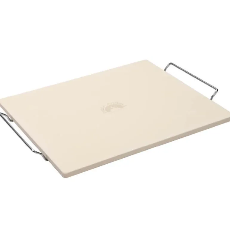 Pizzasteinen er 40 cm lang og 35,5 cm bred. Steintøyet absorberer all overflødig fuktighet, og fordeler varmen jevnt. Slik får du perfekt stekt pizza – hver gang. Sammen med pizzasteinen får du med et stativ, som gjør serveringen superenkel.
