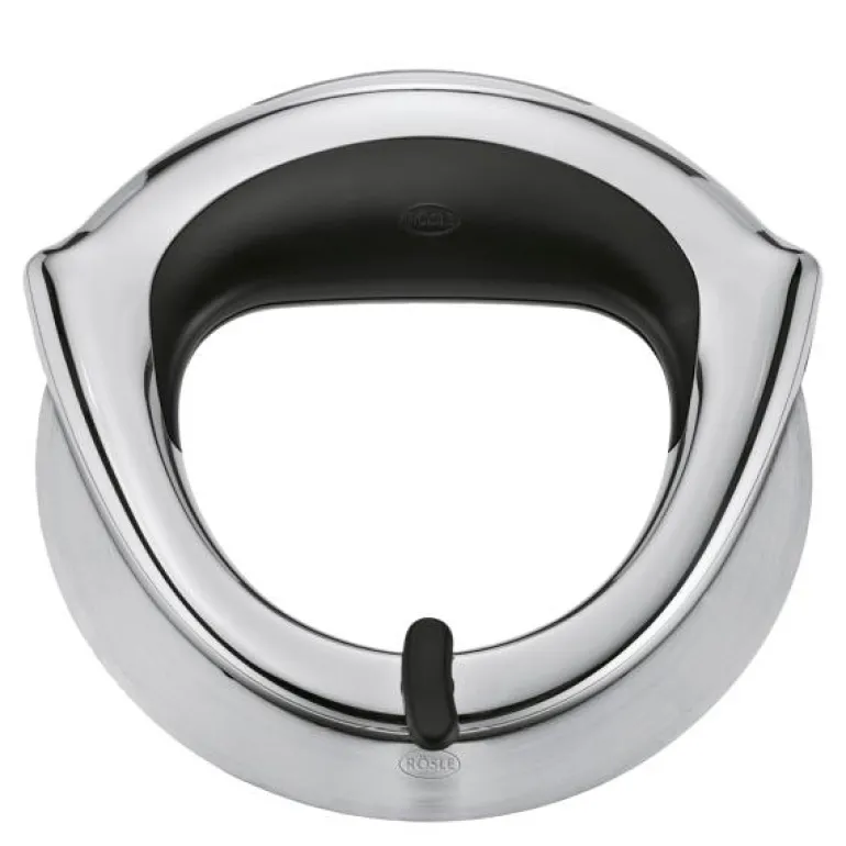 Pizzahjul 14 cm rustfritt stål, fra Rösle. Pizzahjul med innovativ funksjon og elegant design. Pizzahjulet har en rundt kniv som løper fritt, som er slipt på begge sider, og som glir uanstrengt gjennom sprø pizza og tarte flambée, mens det ergonomiske håndtaket ligger godt i hånden.
