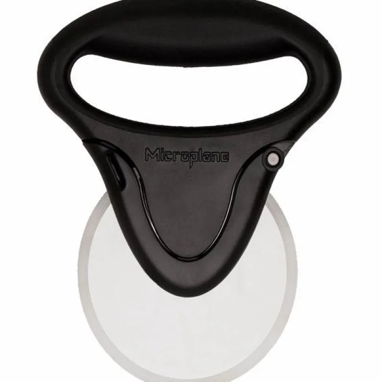 Pizzahjulet er et ergonomisk designet spiralhjul, hvor hjulet enkelt kan tas av når pizzaen er spist og det er tid for oppvask. For å sikre at pizzakutteren ikke dytter rundt på fyllet, men i stedet lager et fint og rent kutt, har Microplane gitt sine pizzakuttere et ekstra stort hjul.