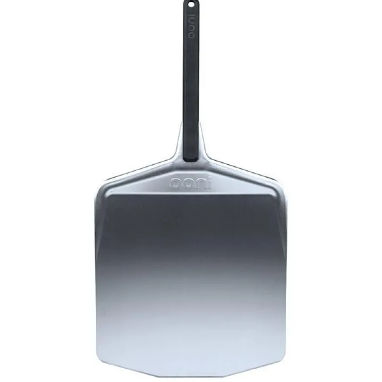Ooni Pizzaspade i aluminium, 35,5×70 cm, gjør det enkelt å håndtere pizza i ovnen. Den lette og glatte utformingen gir en sømløs overgang fra benk til ovn, samtidig som den ultraflate designen gjør det enkelt å skyve inn, snu og hente ut pizza.