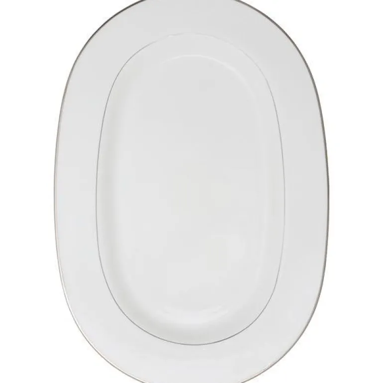 Ovalt fat i serviset Platinum fra Royal Porcelain. Festserviset Platinum er en tidløs serie. Serien har et rent og elegant design i hvitt benporselen kantet med sølv. Med Platinum føler du virkelig at du spiser av kongelig porselen. Gjør stas på gjestene dine ved å servere rykende varm kaffe fra den nydelige 1,2 liters porselenskannen. Platinum-serien kan fint kombineres med produkter fra Royal Porcelains andre serier, som Angelina Platinum eller Extreme Platinum.Serien er produsert av Royal Porcelain, en av Norges største merkevarer innen serviser. Platinum er laget av benporselen, som er den aller fineste type porselen. Serviset tåler oppvaskmaskin, men som med alle serviser med sølv eller gullkant bør serviset ikke vaskes med temperatur over 50 grader og det bør brukes halv dose med vaskemiddel.. Royal Porcelain Platinum får du kun hos Tilbords. Platinum-serien er et komplett festservise, som inneholder alt du trenger til de ekstra spesielle anledningene. Det enkle, tidløse designet gjør at serviset er like aktuell til alle årstider og kan kombineres med bordpynt i dine favorittfarger. Serien inneholder tallerkener i ulike størrelser – til forrett, hovedrett og dessert – serveringsfat i flere størrelser, suppeterrin, sausenebb og salatbolle. I tillegg finner du selvsagt et komplett kaffeservise. Platinum er et servise du kan samle hele livet, og er et naturlig valg å sette på bryllupslisten.