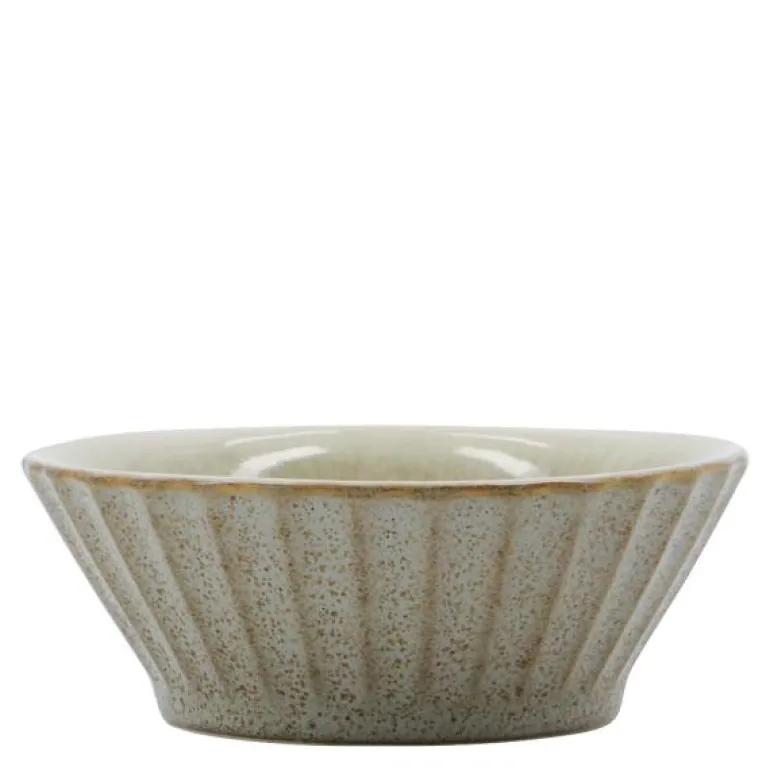 Pleat bolle 8 cm grå/brun, fra House Doctor. Gi borddekkingen et fint, elegant preg med denne lille bollen fra House Doctor. Den rilleformede designen kommer sammen med en matt ytterside og en blank innerside for å skape et tidløst uttrykk. Bruk bollen som en liten snacksbolle til tapasbordet eller til dipper, pestoer og sauser når du har invitert gjester på middag. Eller fyll den med salt og ha den på benken eller middagsbordet til måltidet.