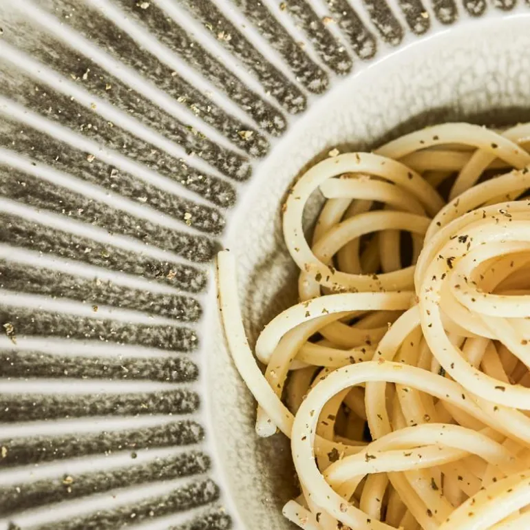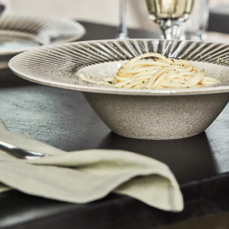 Pleat pastatallerken 26 cm grå/brun, fra House Doctor. Denne pastatallerkenen fra House Doctor presenterer retten din på helt riktig måte. Delvis funksjonell, delvis stilig – den brede kanten fremhever retten og kontrasterer dybden på tallerkenen. Bordet får et tidløst elegant stykke design med en rillet overflate. Og med sitt matte ytre og blanke innerside, viser tallerkenen en riktig mengde detaljer for at den passer til både uformelle og spesielle anledninger.