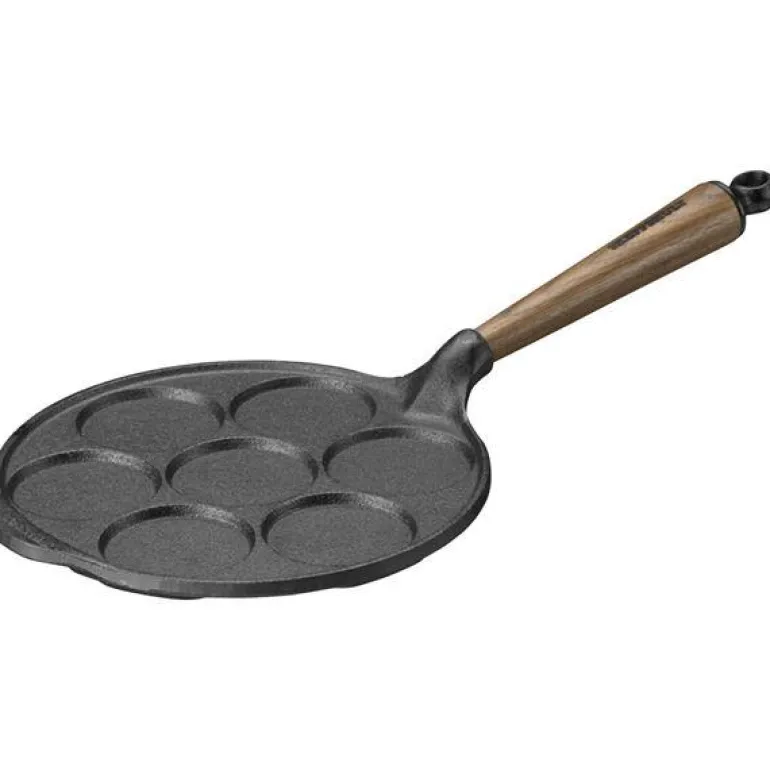 Plettpanne i støpejern 23 cm med håndtak i valnøtt.