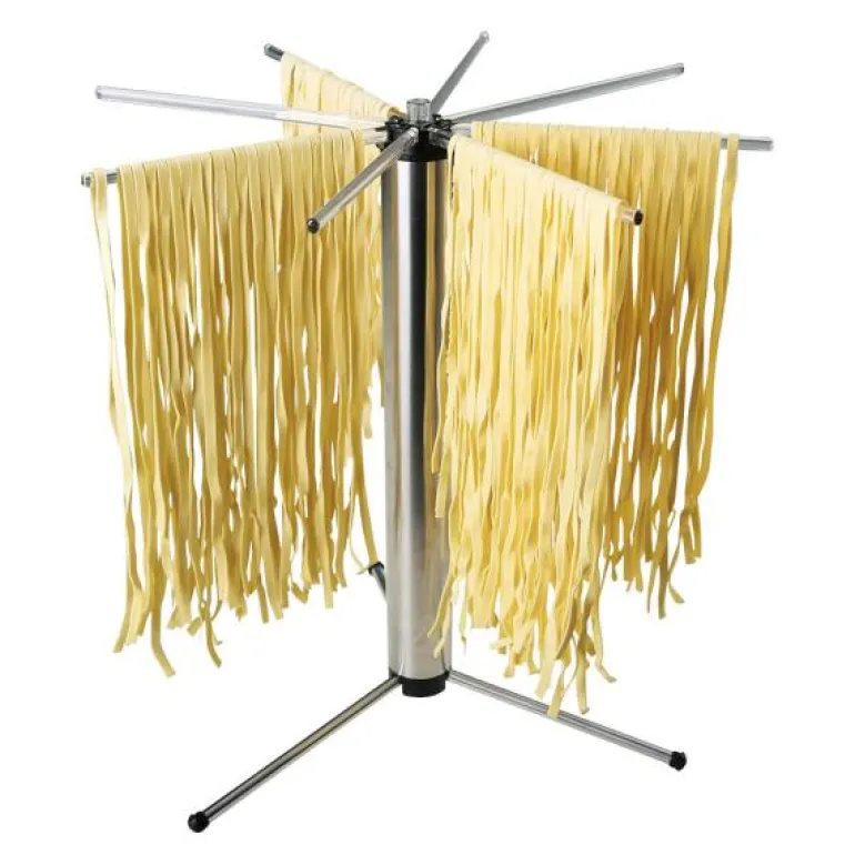 Hjemmelaget pasta vil glede hele familien. Men hvor skal man legge tagliatelle eller spaghetti før den går i gryten? På pastatørkeren PLUS PASTACASA fra KÜCHENPROFI. Åtte armer i rustfritt stål gir nok ledig plass slik at nudlene ikke berører og fester seg. I motsetning til oppbevaring på stekeplate eller kjøkkenbord, tørkes pastaen grundig fordi luften sirkulerer optimalt.