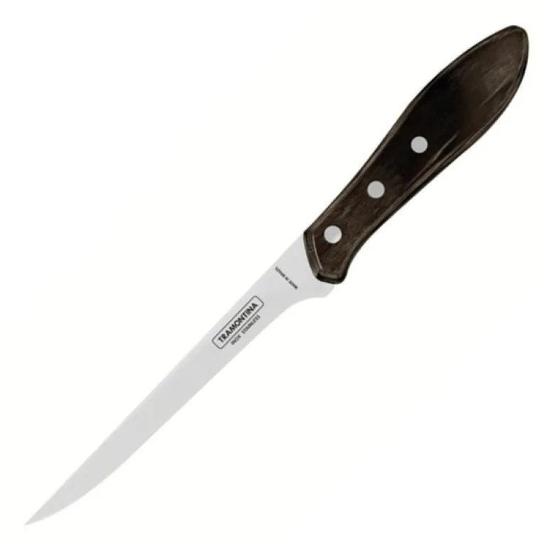 Tramontina Polywood utbeiningskniv på 15,5 cm er utviklet med fokus på presisjon og styrke. Det smale, rustfrie stålbladet er laget med ekstra tykkelse og stålstempling, noe som gir økt motstand og reduserer risikoen for vridning ved bruk. Knivens form gjør det enkelt å følge ben og konturer i kjøtt og fjærfe.
