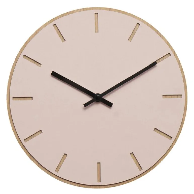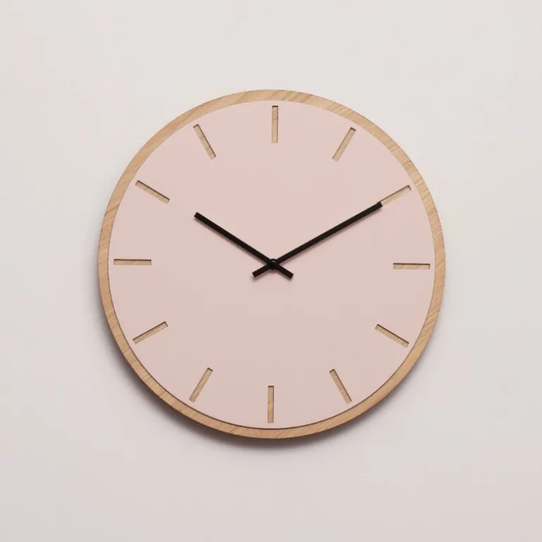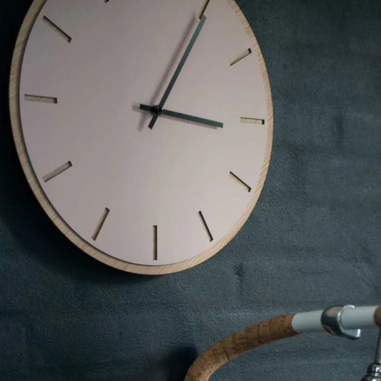 Denne Powder veggklokken fra Hemverk er et elegant valg for deg som ønsker et lyst og minimalistisk design på veggen. Med en overflate av støvete rosa linoleum og en base av lys eikefiner utstråler klokken en enkel, nordisk estetikk. Den 28 cm store klokken har tydelige, utskårne timeindikatorer som gir et dempet, men tydelig uttrykk. De svarte viserne skaper en fin kontrast til den myke rosafargen, men du kan også velge visere i andre farger for å justere klokkens stil etter eget ønske.
