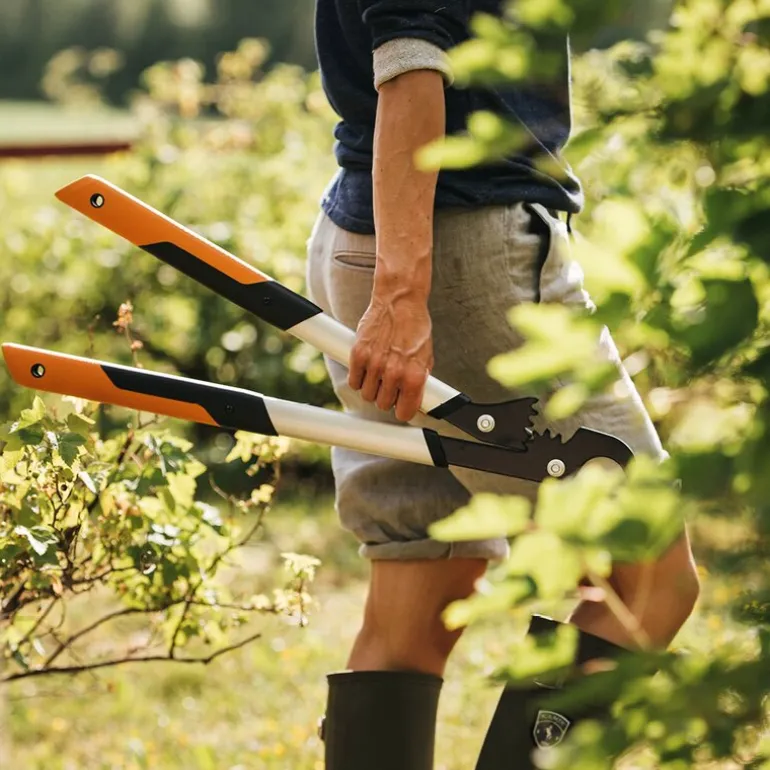 PowerGear™ X grensaks med sideskjær S LX92 62,5 cm oransje/svart fra Fiskars. Grensaks med sideklipp for klipping av ferske trær og greiner. PowerGear™-mekanismen gir 3X mer kraft i klipsen. Grepsvennlig håndtak i SoftGrip™. Materiale i FiberComp™. Kuttekapasitet: Ø 38 mm.