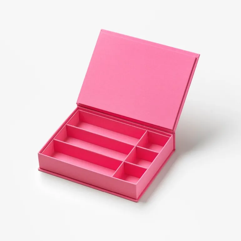 Med seks separate rom – tre store og tre små – gir boksen mulighet til å organisere alt fra smykker og nøkler til penner og hodetelefoner. En praktisk måte å holde eiendelene lett tilgjengelige samtidig som interiøret løftes.