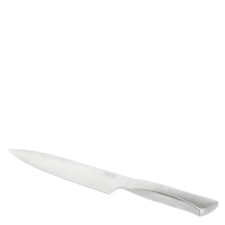 Precision kokkekniv i rustfritt stål med lengde på 33,5 cm fra Tareq Taylor er det perfekte redskapet for alt fra finhakking av urter til krevende kutteoppgaver. Med et 20 cm langt blad i rustfritt stål og en vakker satinfinish kombinerer kniven stil og ytelse. Den skarpe eggen sørger for presise snitt, og det ergonomiske håndtaket gir komfortabel kontroll.