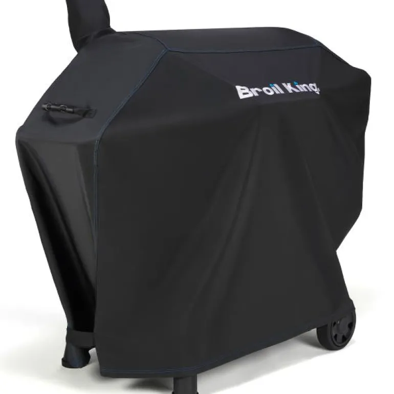 Premium grilltrekk Regal Pellet 500.Produsert av slitesterk vannavvisende PVC/polyester og blå ekstra forsterkede buede «baseballsømmer» med borrelås for å få en god passform.