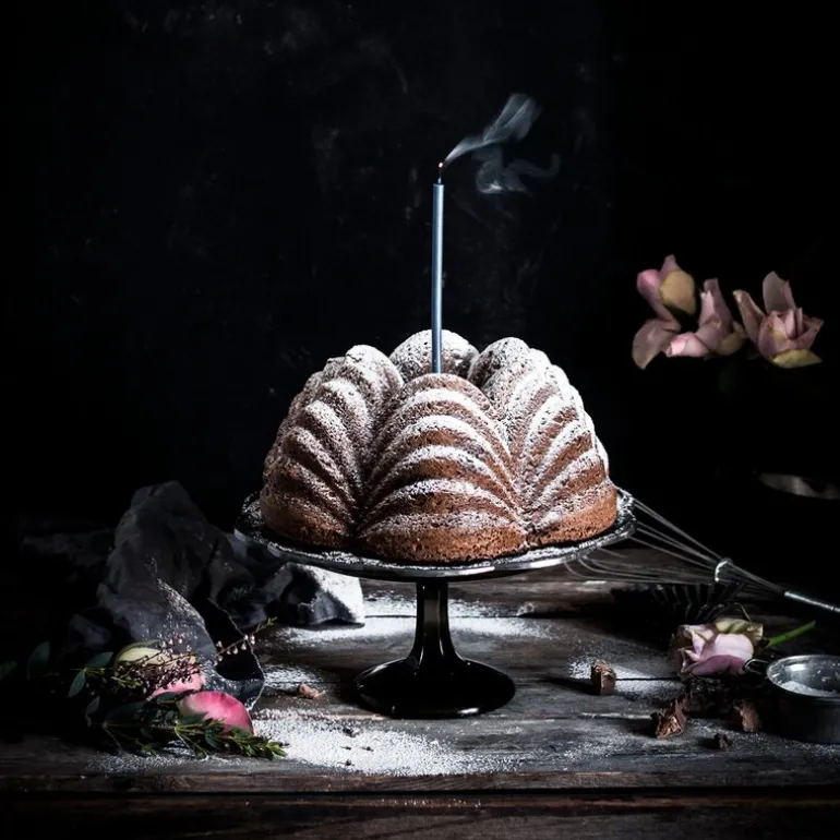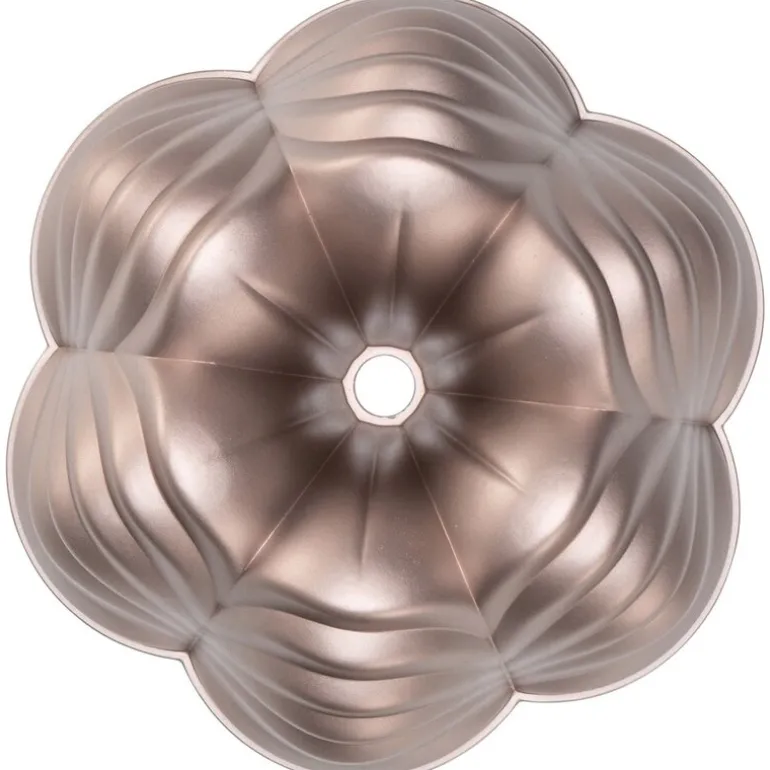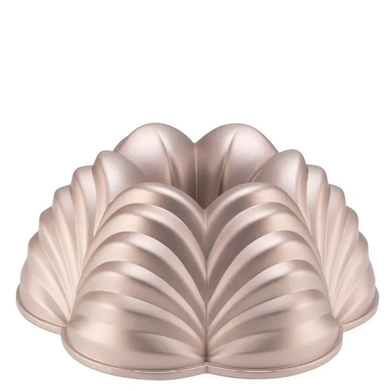 Rosegull-finishen gir et eksklusivt preg, og gjør formen til et dekorativt element i kjøkkenet. Den egner seg til mange typer kaker – fra lette og luftige til tette og rike varianter.