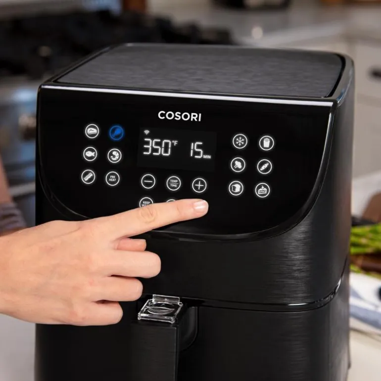 11 innebygde forhåndsinnstillinger gjør Cosori Premium Smart Airfryer matlagingen til en lek. Ett trykk på touchskjermen, og matlagingen er i gang. Så lett! Denne airfryeren har en kapasitet på 2,2 kg eller 5,5 liter, som gjør at den passer perfekt for familier på 2–5 personer.