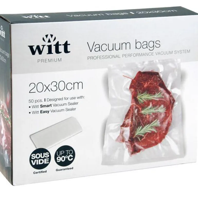 50 stk. Vakuum-poser 20 x 30 cm. Kan brukes sammen med Witt Premium Vacuum Sealer.