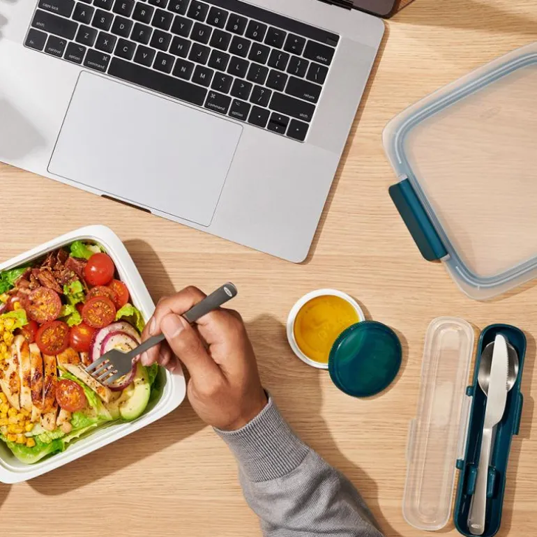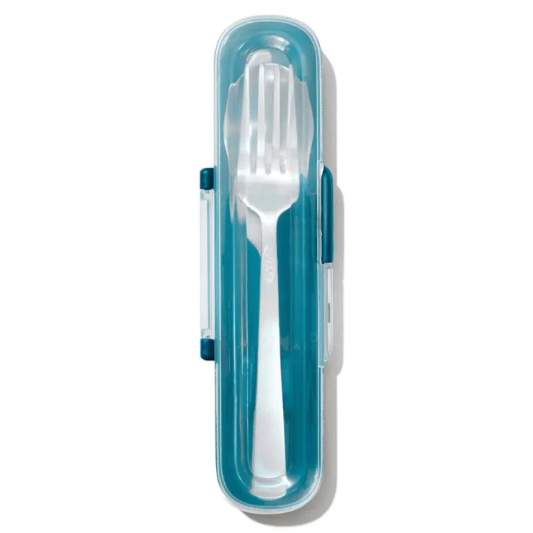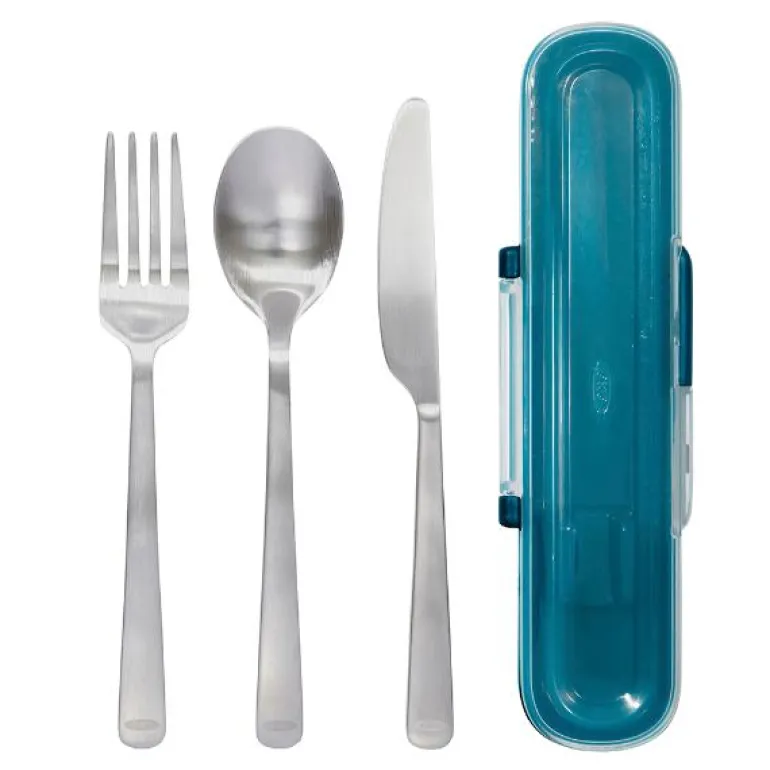 Bestikksettet består av kniv, gaffel og skje i rustfritt stål, og de kommer i et etui som passer sammen med OXOs Prep & Go matbokser. Utover å være et supplement til matboksene, er bestikksettet også velegnet til å ta med til piknik og take-away mat, i stedet for å bruke engangsbestikk. Tåler oppvaskmaskin.