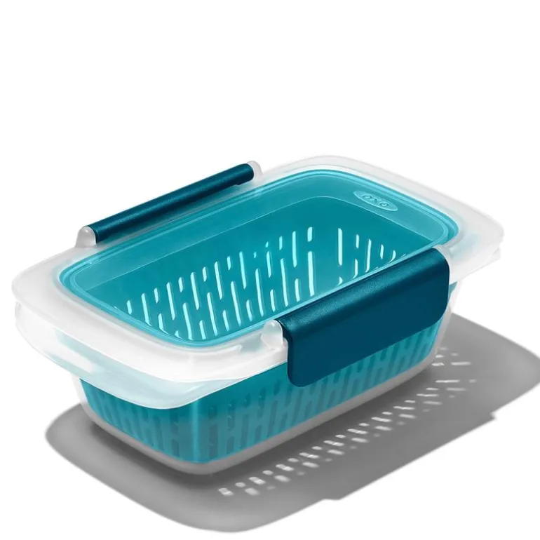 Denne matboksen har en oppbevaringsbeholder med dørslag, og er spesielt velegnet til bær, frukt og grønt. Bær mm. kan skylles og oppbevares i dørslaget, hvor de holdes friske i lenger tid. Lokket har en solid silikonpakning som gjør at matboksen er 100% tett. Matboksen er BPA-fri og tåler fryser, mikrobølgeovn og oppvaskmaskin. Silikonpakningen kan demonteres for grundig rengjøring.