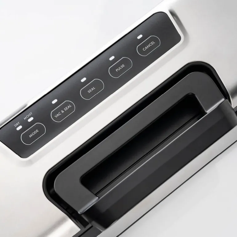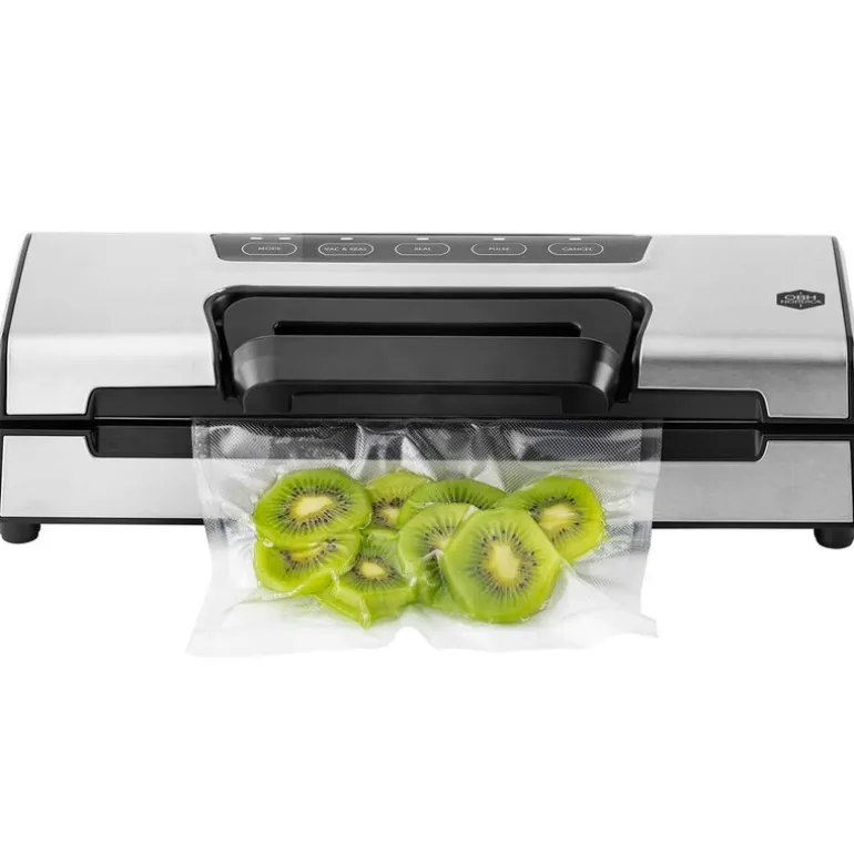 Svært funksjonell vakuumpakker av førsteklasses kvalitet. Den er sterk og hurtig, og har både god kapasitet og en effektiv forseglingsprosess. Prime kan vakuumpakke store volumer, fordi den har høy kapasitet på 12 liter per minutt og rask forsegling av posene. Vakuumpakkede matvarer holder opptil fem ganger lenger*, og beholder både kvalitet, konsistens og næringsverdi fordi råvaren ikke kommer i kontakt med oksygen. Vakuumpakkeren har mange praktiske funksjoner. Puls-funksjonen er for eksempel svært godt egnet til å pakke ømtålige matvarer som frukt, bær og sopp, fordi man unngår å mose råvarene. Med puls-knappen er det også lett å pakke væskefylt mat, fordi den skaper det akkurat det vakuumet du behøver for deretter å forsegle posen. Dermed passer denne vakuumpakkeren for alt fra hobbydyrkere, jegere, soppsankere og bærplukkere. Du kan trygt ta vare på alt fra hagen og skogen, og nyte sommerens og høstens smaker året rundt. Praktisk ettgrepshåndtak og innebygd kutter gjør håndteringen enklere. Den har også integrert oppbevaring for plastruller, slik at du alltid har vakuumplast for hånden og enkelt kan justere lengden etter behov. Du kan enkelt betjene maskinen med én hånd, feste posen med håndtaket og åpne maskinen når posen er forseglet. Det avtagbare brettet gjør den enkel å vaske opp og forhindrer at væske trenger inn i maskinen. Vakuumpakkede poser tar mindre plass i kjøleskap og fryser, og posene kan brukes mikrobølgeovn og til matlaging Sous Vide. Et startsett med fem poser og én rull følger med, slik at du kommer raskt i gang.* Sammenlignet med matvarer som ikke er vakuumpakket (intern studie utført i februar 2021 med frisk frukt og grønnsaker).