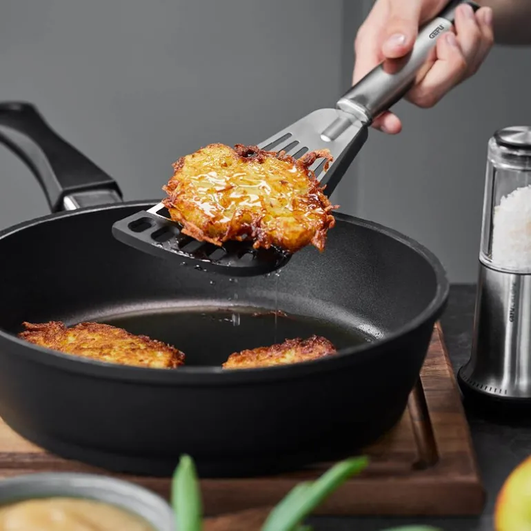 Gefu, i samarbeid med designstudioet invivo design i Berlin, har utviklet Primeline stekespade for å kombinere funksjonalitet med et moderne og elegant design. Dette gjør den til et uunnværlig verktøy for alle som ønsker en profesjonell og skånsom tilnærming til matlaging i belagte kokekar.