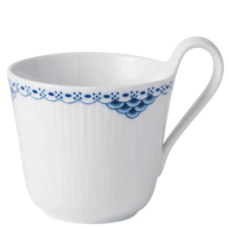 Prinsesse høyhankskopp 33 cl. Prinsesse-serien er romantisk med et lett uttrykk. Opprinnelig ble det designet som et teservise, men i 1978 ble mønsteret produsert som et fullt middagsservise. Den håndmalte, elegante blondekanten kan minne om mønsteret i Musselmalt-serviset.