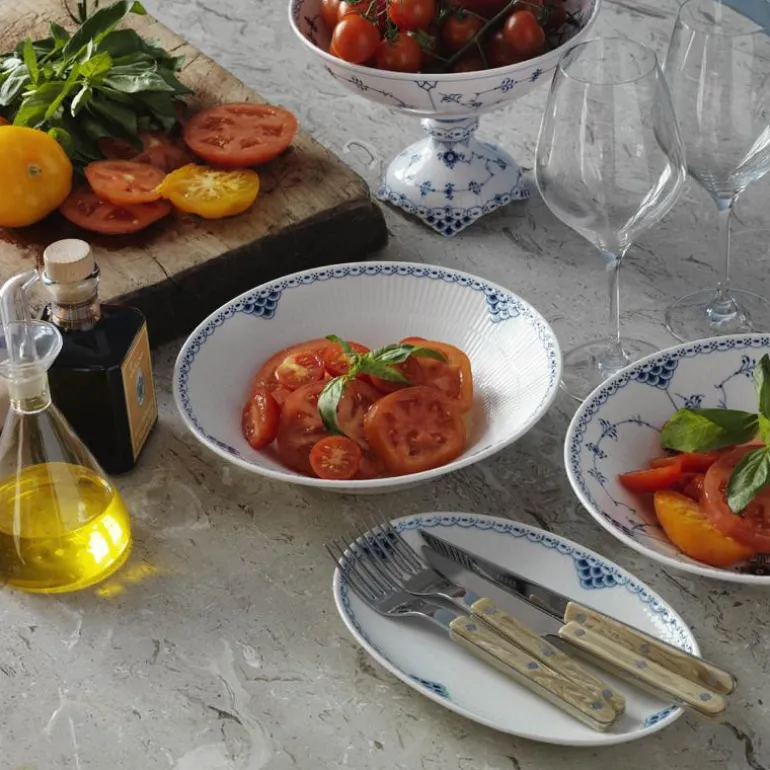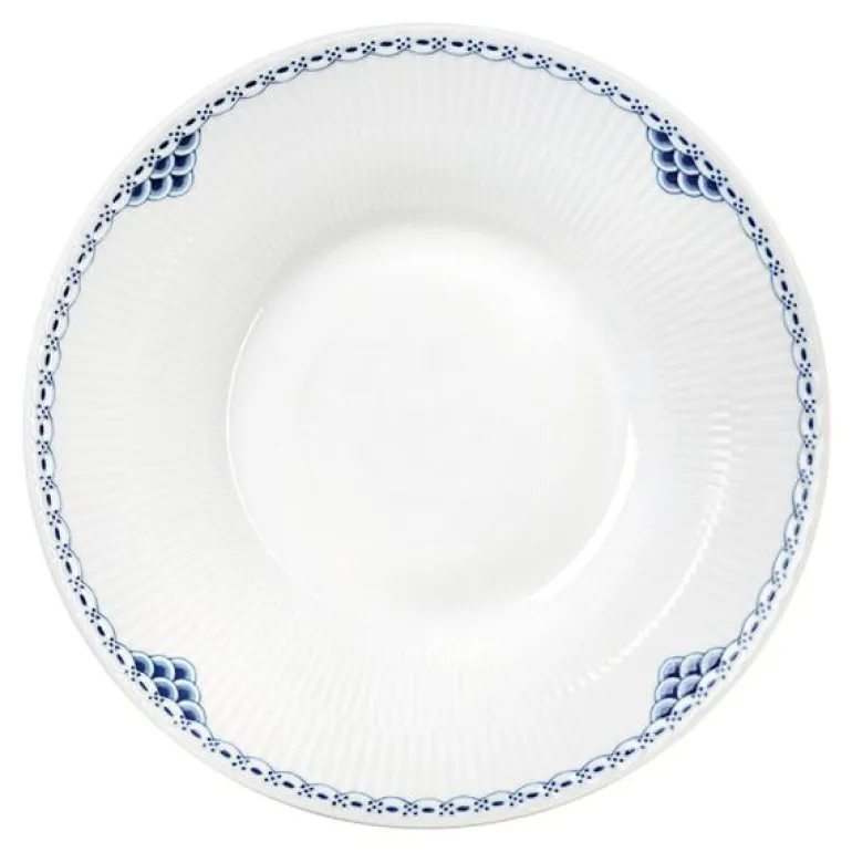 Princess Dyp Tallerken på 24 cm fra Royal Copenhagen er en vakker, håndmalt tallerken med en elegant blå bård som gir et tidløst preg til borddekkingen. Med sitt klassiske design passer Princess-serviset perfekt både til middag og kaffe, og kan gjerne kombineres med andre kolleksjoner fra Royal Copenhagen for en personlig og stilfull borddekking. Dette porselenet er en investering i varig eleganse – et servise som aldri går av moten.