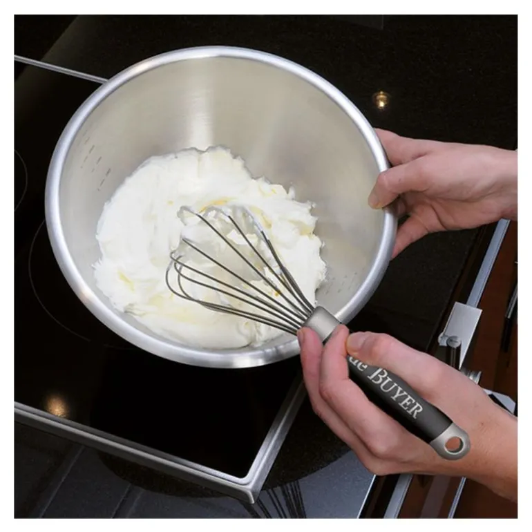 Opplev mesterverket av kjøkkenredskaper med vår universelle visp fra De Buyer – en uunnværlig alliert for kjøkkenet, konditoriet og bakeriet. Enten du forbereder sauser, emulsjoner, eggehviter, krem eller bakverk, er denne vispen din ultimate følgesvenn.