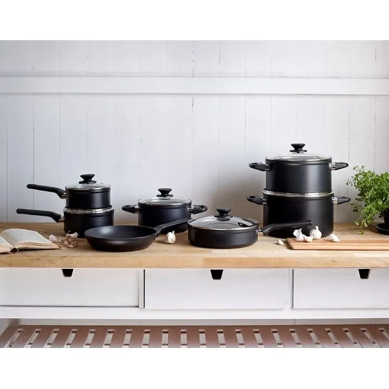 Professional Plus er en videreutvikling av bestselgeren Professional fra Kitchen Essentials. Serien har meget god varmeledningsevne gir rask og jevn oppvarming og et godt resultat. Den nye induksjonsbunnen sikrer enda bedre effekt på induksjon.