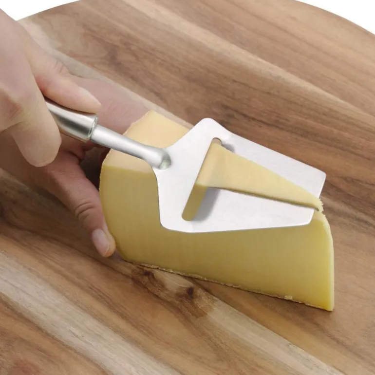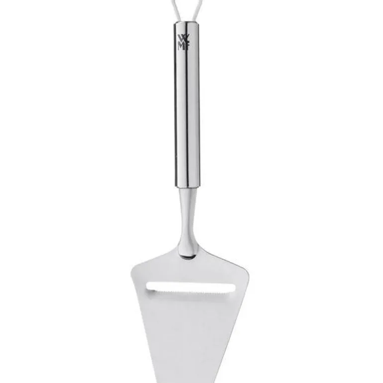 Skjær først, nyt så. Bruk ostehøvelen fra WMFs Profi Plus-serie til å skjære tynne osteskiver av halvharde og harde oster. Tips: Skjær alltid ost når den er fersk – dette gjør at den ikke tørker ut, og den vil se bedre ut og smake bedre. Den elegante ostehøvelen i holdbart Cromargan® rustfritt stål kan også brukes til å rive sjokolade eller nougat.