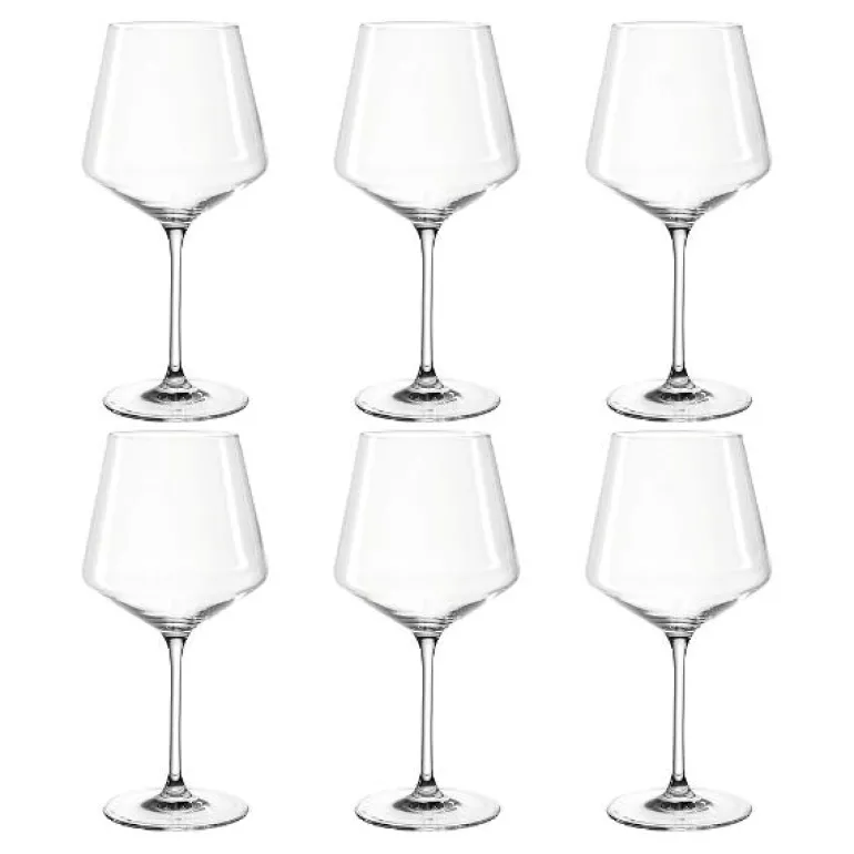 Sett med seks rødvinsglass fra Leonardos Puccini-serie, perfekte burgunderviner. Med sine rette, stilige linjer passer glassene til de fleste borddekning. Glassene er laget av støtbestandig Teqton-glass og tåler oppvaskmaskin. Volum 73 cl.