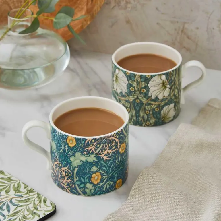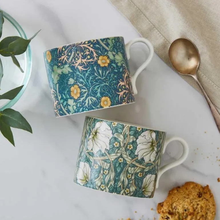Opplev tidløs eleganse med dette settet fra Spodes Morris & Co.-kolleksjon. Settet inneholder to porselenskrus à 34 cl, dekorert med de ikoniske Seaweed- og Pimpernel-mønstrene – gjengitt i dempede, moderne nyanser som gir en rolig og sofistikert stemning til kaffestunden.