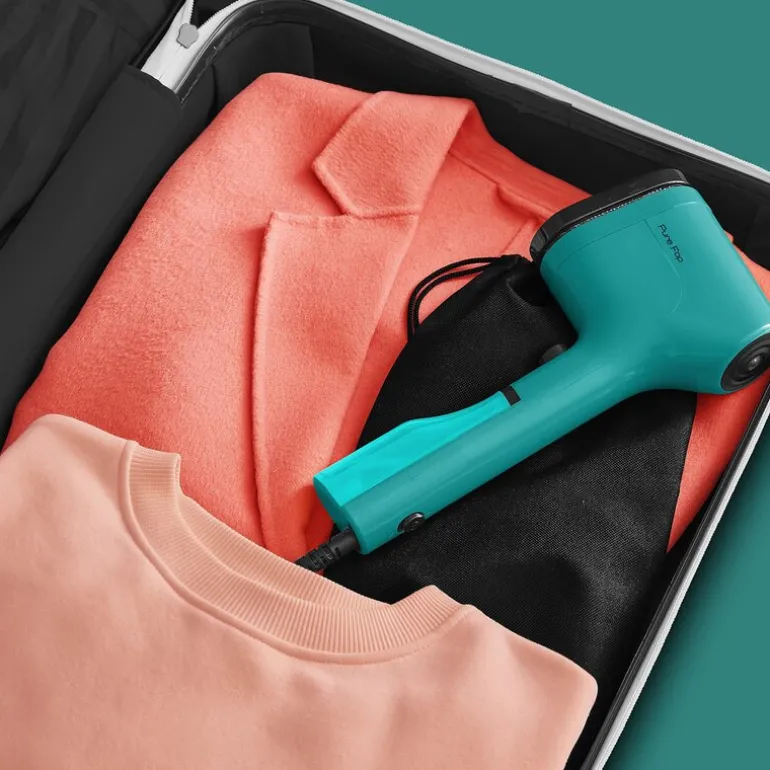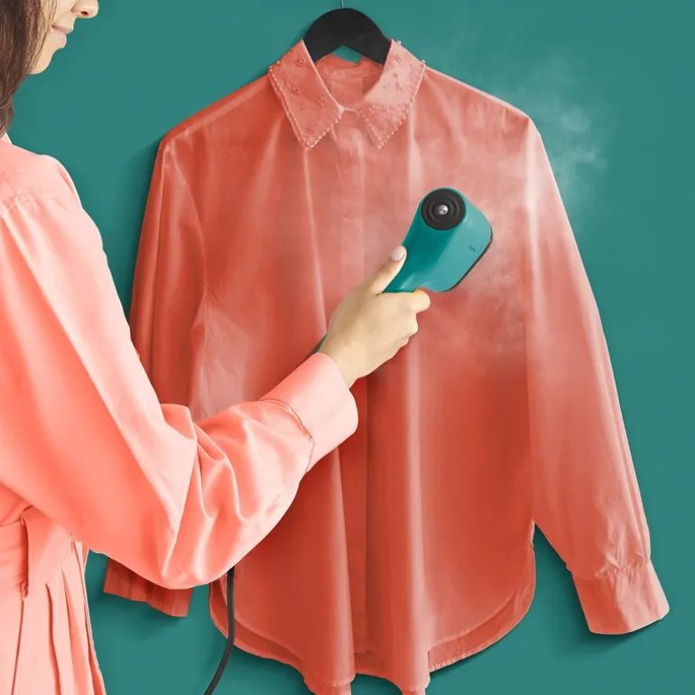 Friske klær – hvor som helst, når som helst. Med Tefal Pure POP grønn får du en steamer som alltid er klar når du trenger den.
