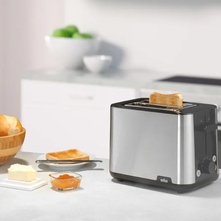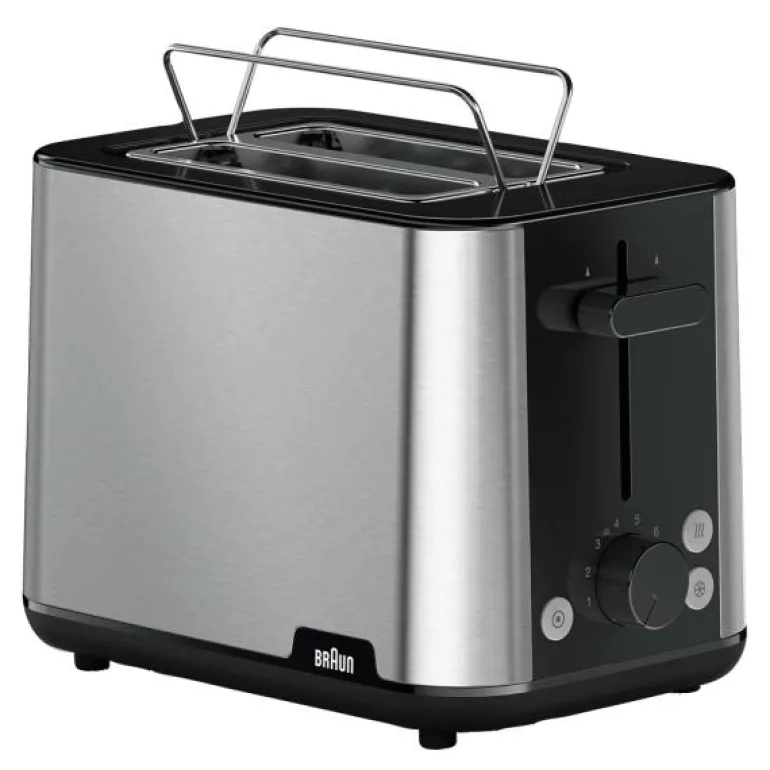Purshine brødrister HT1510.BK svart fra Braun er den perfekte løsningen for enkel oppvarming av boller og ulike typer brød samtidig. Med Brauns hevesystem kan du enkelt løfte selv små skiver brød, og den automatiske sentreringsfunksjonen sikrer at brødet alltid er i en ideell posisjon for jevn bruningsresultater.