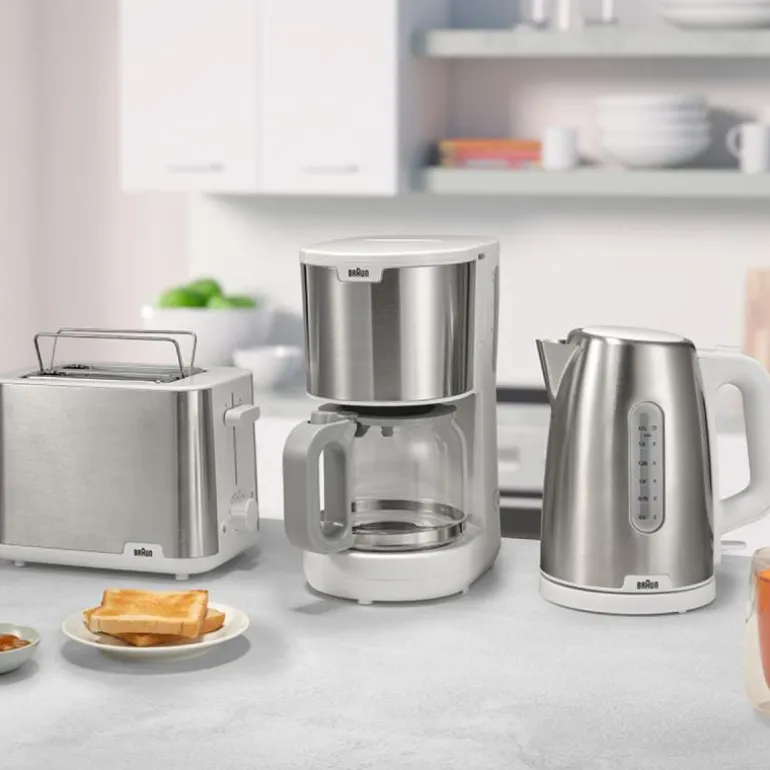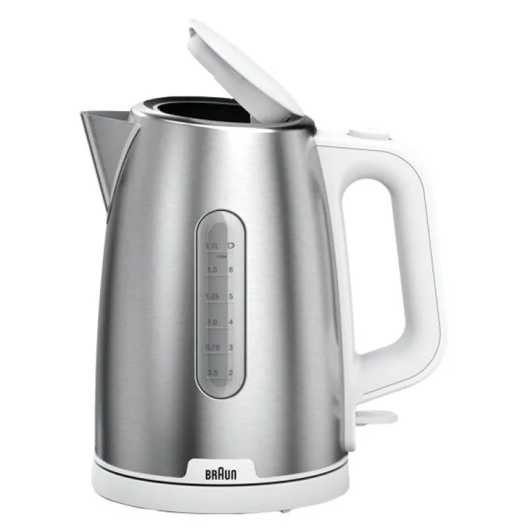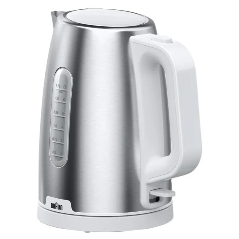 Purshine vannkoker 1,7L WK1500.WH hvit fra Braun. Pift opp morgenen din med den helt nye PurShine Breakfast-kolleksjonen. Dette brukervennlige og stilsikre utvalget vil glede deg og gjøre morgenrutinene dine raske og deilige. Vår rustfrie stål vannkoker på 1,7 liter med Rapid Boil-systemet er ideell for å få en rask kopp perfekt te. Den koker 200 ml vann på bare 45 sekunder! Kolleksjonen er tilgjengelig i både svart og hvitt, og har Brauns ikoniske design med detaljer i børstet metall som lyser opp ethvert kjøkken.