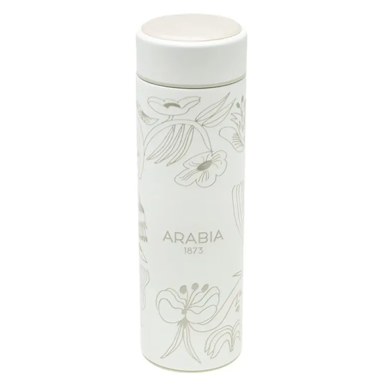 Puutarhurit termoflaske 0,5L beige fra Arabia er den perfekte følgesvennen for både korte og lange turer. Denne elegante termoflasken med sitt enkle design og unike Puutarhurit-mønster av Armi Teva gir den et særegent og stilrent utseende. Flasken har en lett konstruksjon som gjør den enkel å ta med seg, og den praktiske, lekkasjesikre korken sørger for trygg oppbevaring av drikken. Uansett om du vil holde drikken varm eller kald, vil denne flasken sikre at temperaturen bevares lenge, slik at du alltid kan nyte en god drikke på farten.